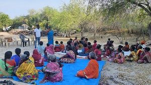 and then distributed relief supplies and Christian literature to those present.
